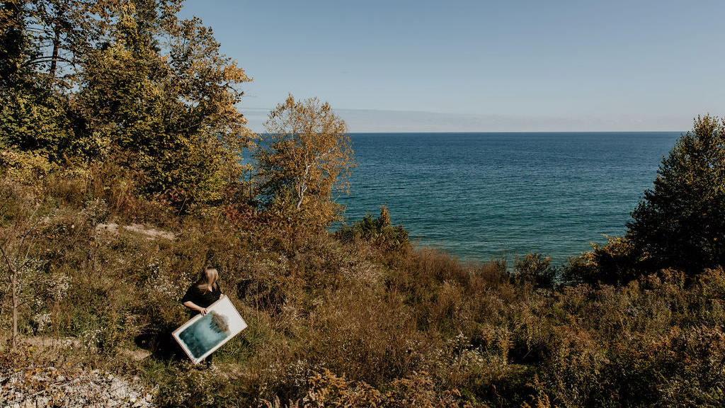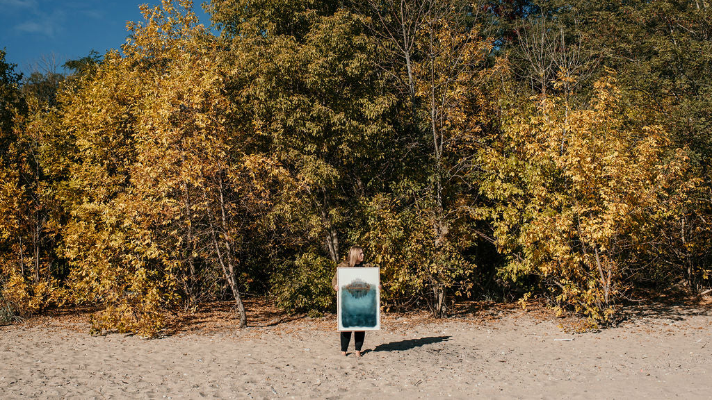 Walks have become an anchoring part of Stephanie’s art practice where she steps outside of the studio to find inspiration from bodies of water. Water is both powerful and intimate. It is turbulent as much as it is peaceful. It can be seen as a reflection of the landscapes we find within us.