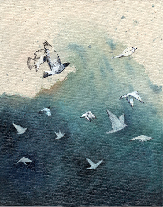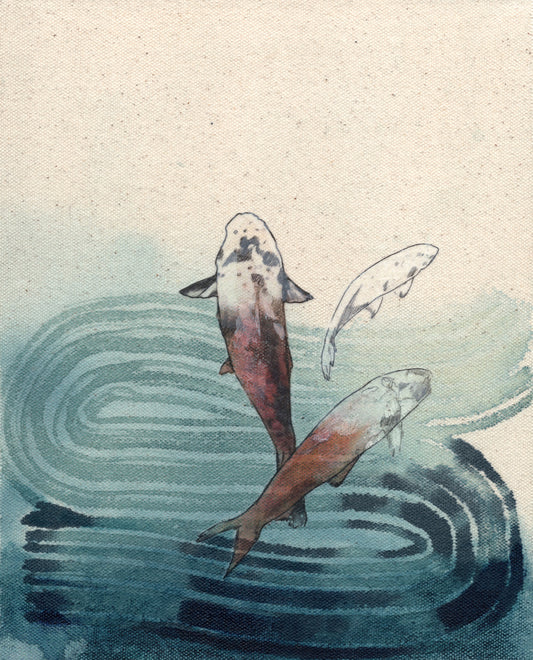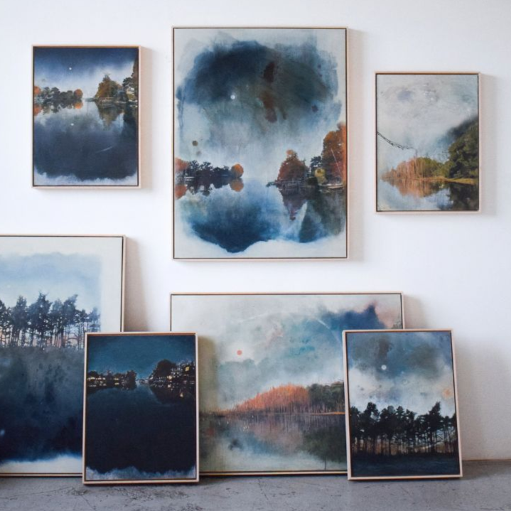 Stephanie's process is similar to the bodies of water she loves to paint - fluid and ever changing. She loves mixing different processes, such as printmaking, collage, painting, and digital photography. She often blends recognizable elements from her surroundings or memories with abstraction, whether by painting over collages or transferring them onto various surfaces.