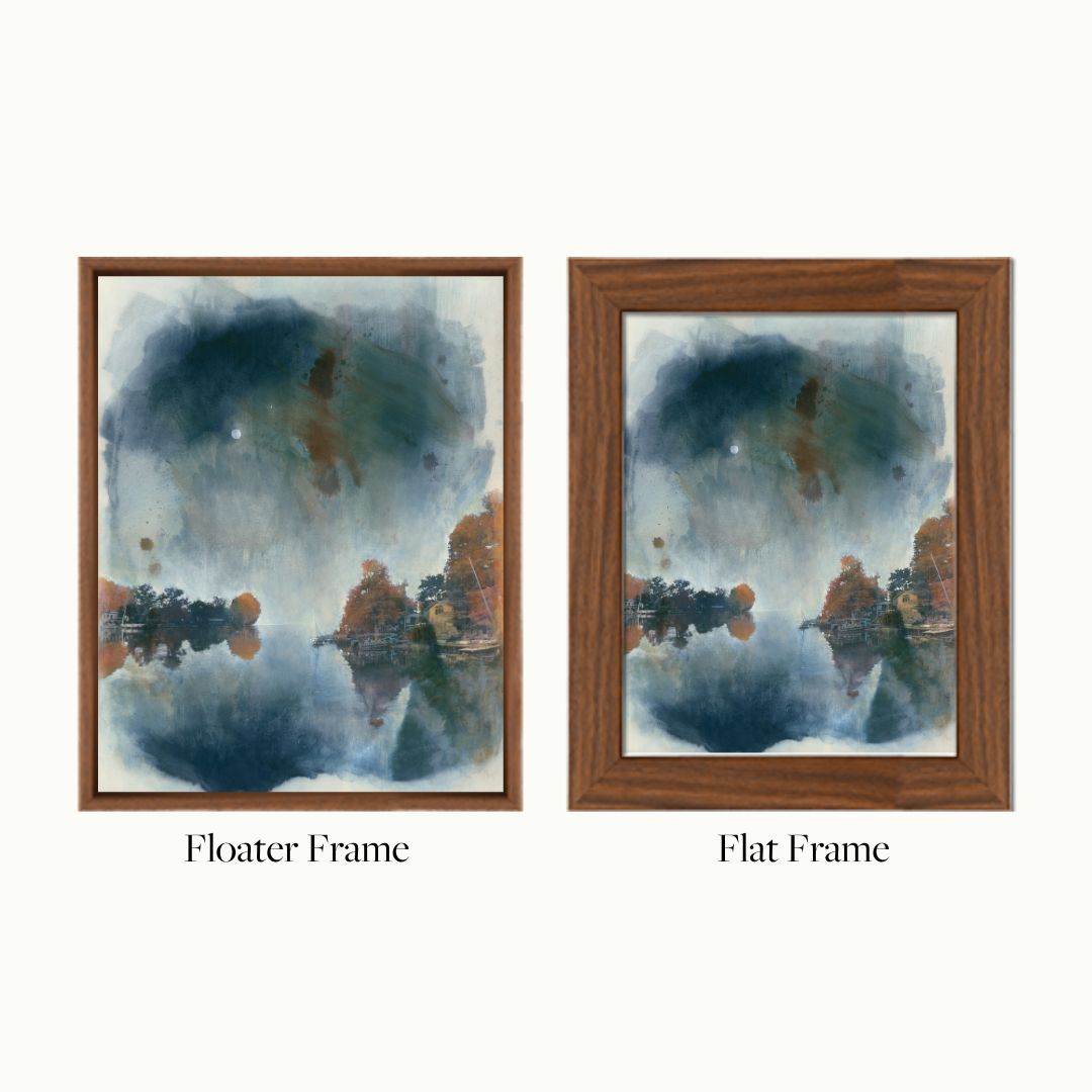 Choose a flat frame with professional quality acrylic glass and complimentary dry mounting for a paper print. Stretched canvas prints come with a protective varnish and are framed in a floater frame.