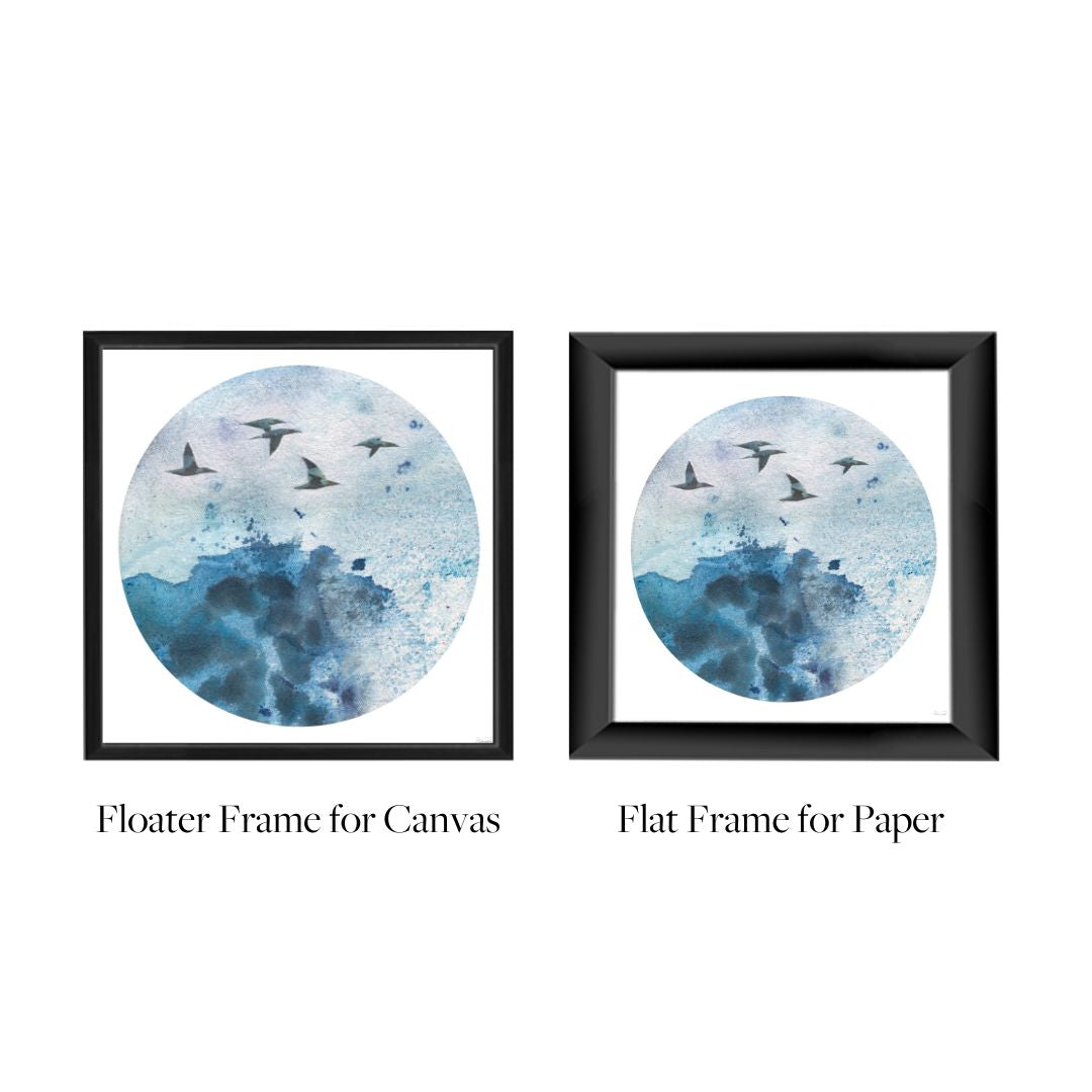 Choose a flat frame with professional quality acrylic glass and complimentary dry mounting for a paper print. Stretched canvas prints come with a protective varnish and are framed in a floater frame.