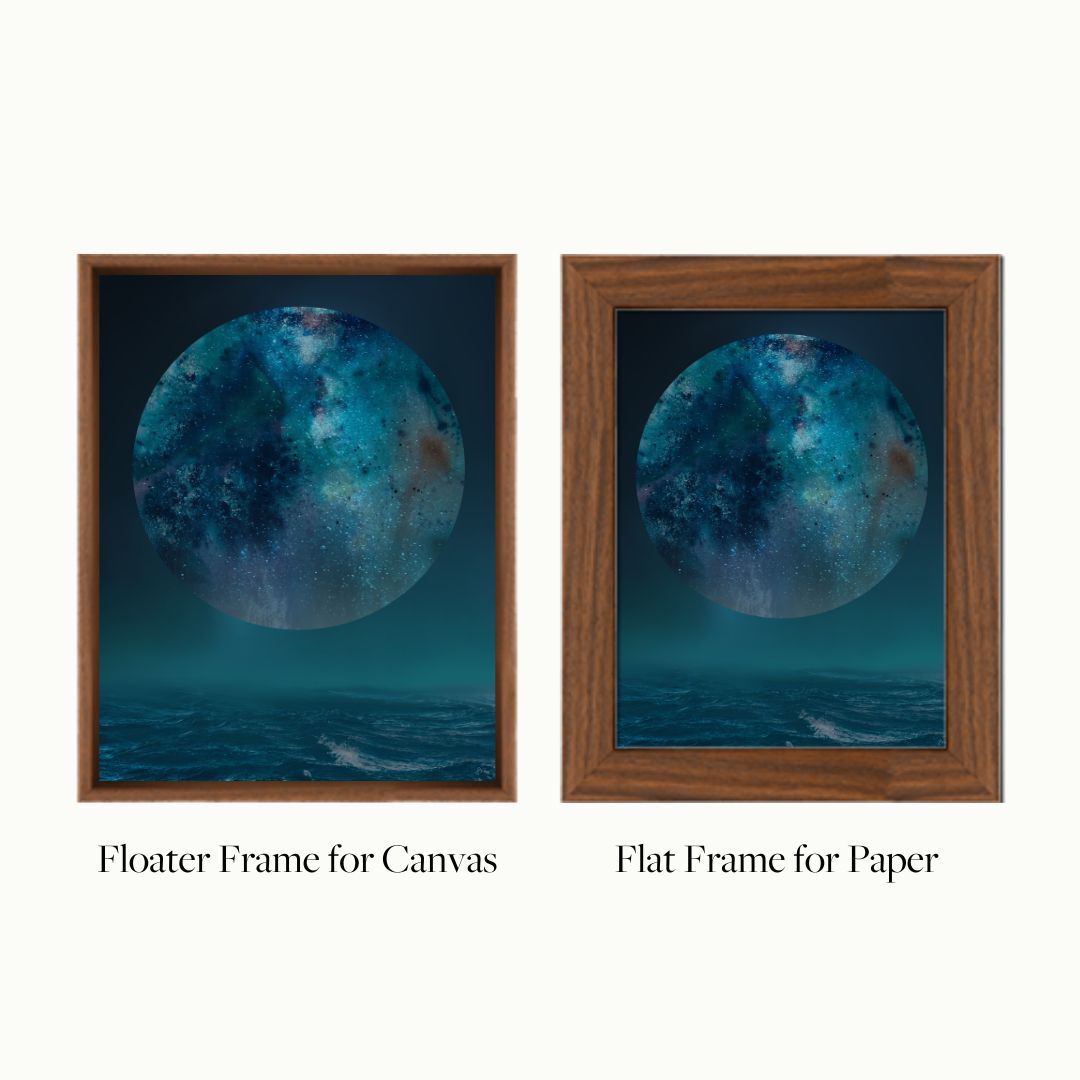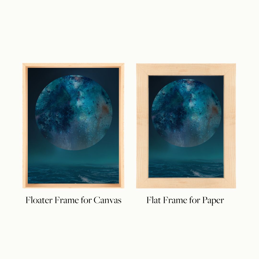 - Framing options for both paper and canvas prints. All frames are 100% wood, ensuring durability and longevity.