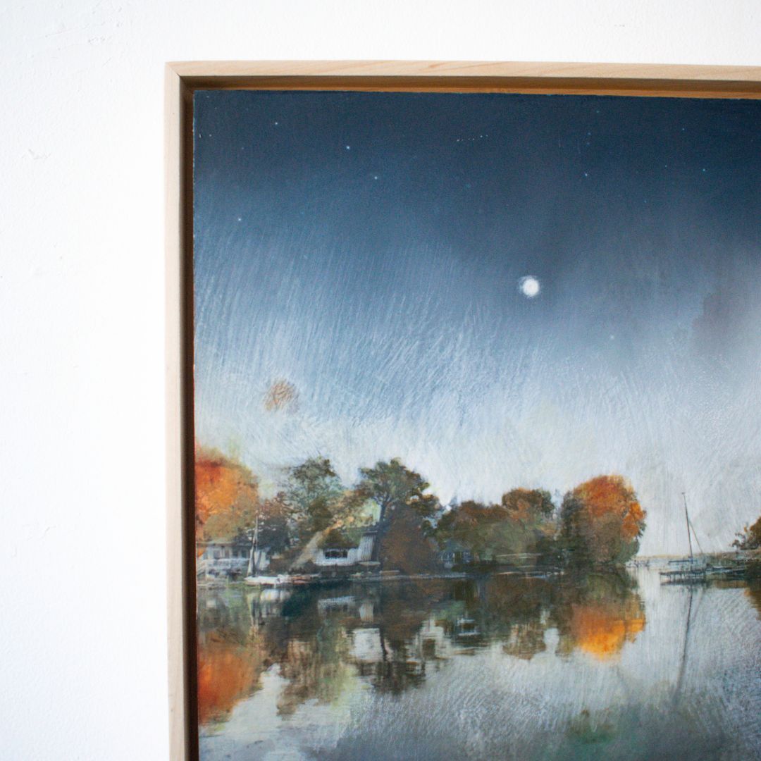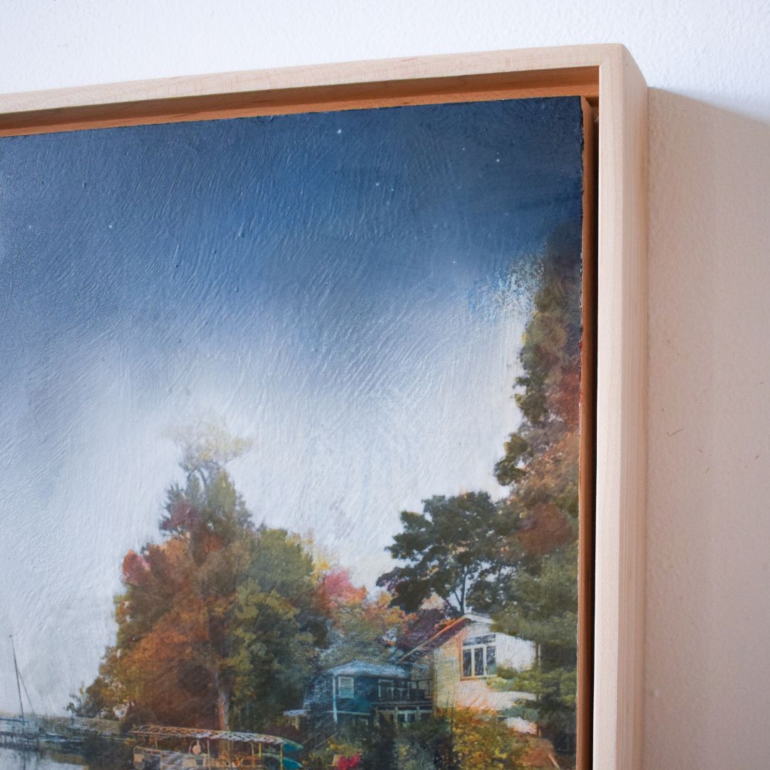 Painting come framed, wired, and ready for hanging. Includes a 2.5-inch-deep, raw maple, floater frame that is handcrafted by a carpenter.