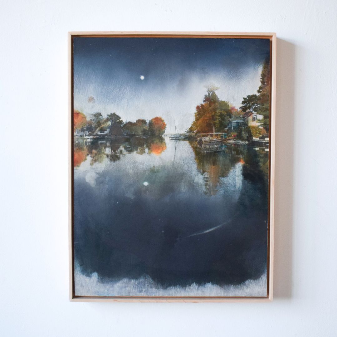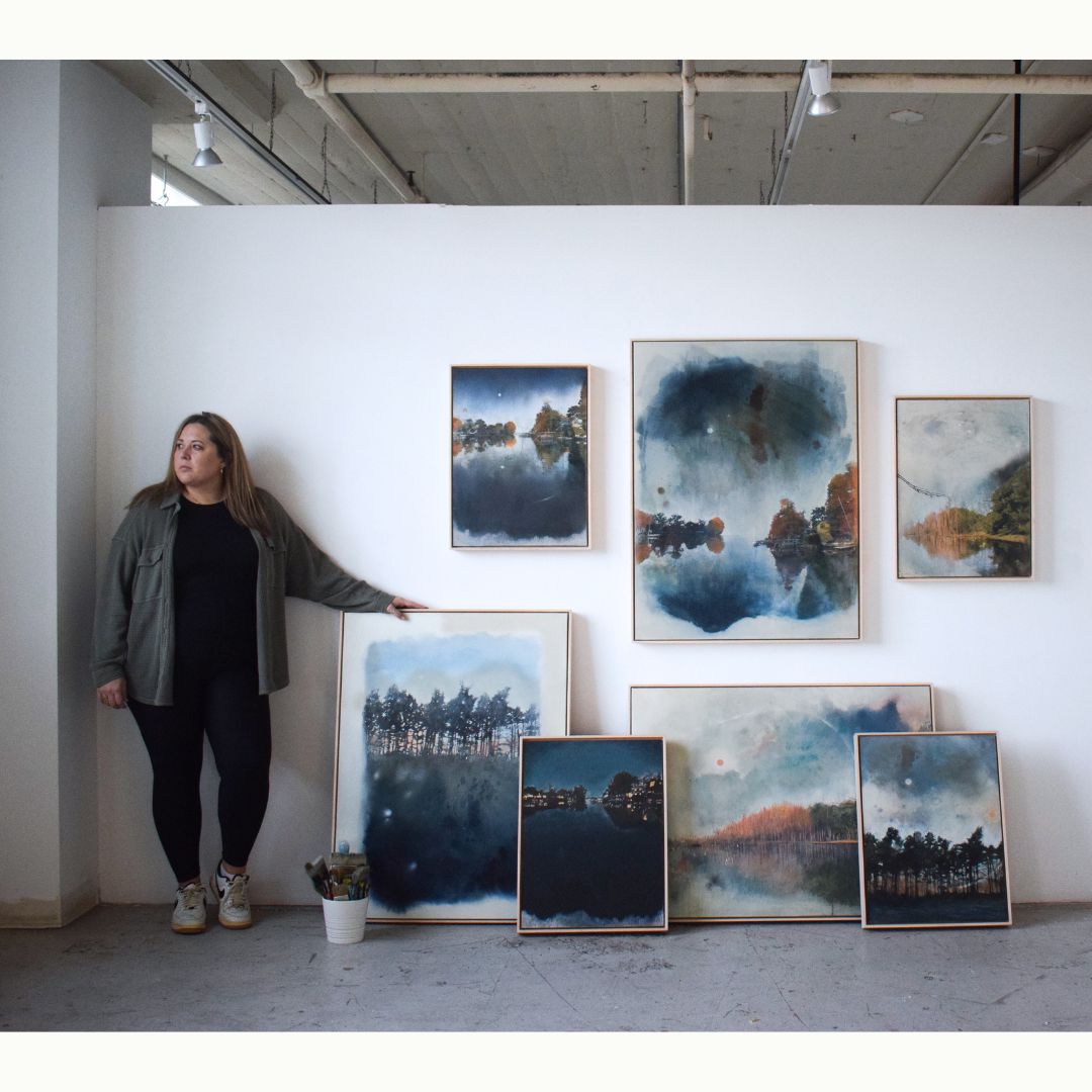 Stephanie's process is similar to the bodies of water she loves to paint - fluid and ever changing. She loves mixing different processes, such as printmaking, collage, painting, and digital photography. She often blends recognizable elements from her surroundings or memories with abstract shapes, whether by painting over collages or transferring them onto various surfaces.