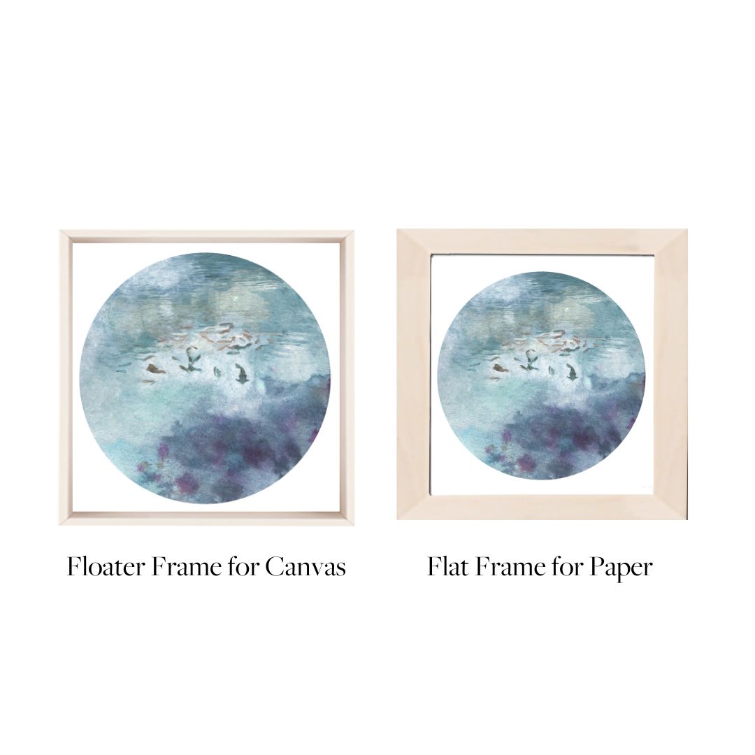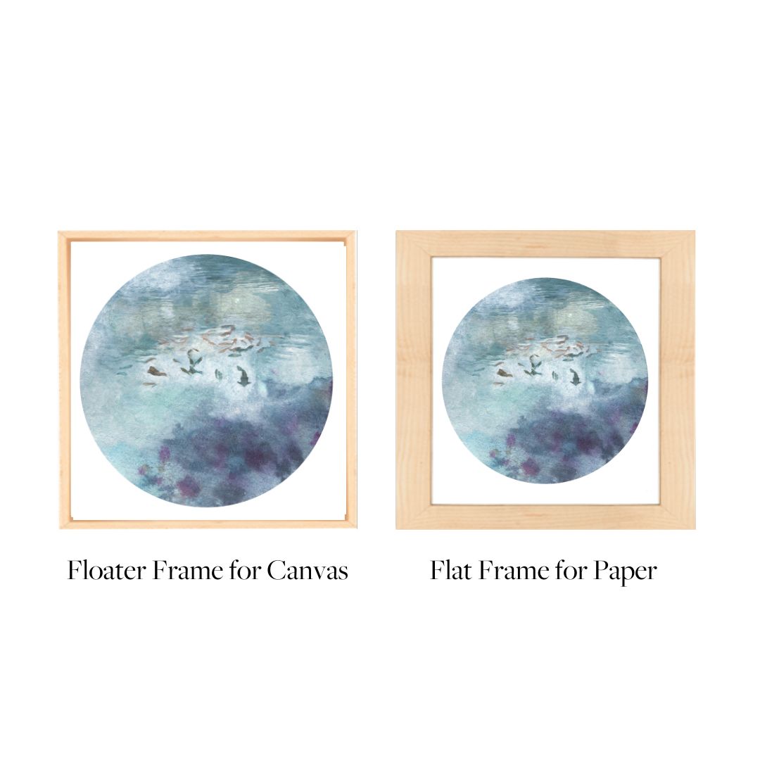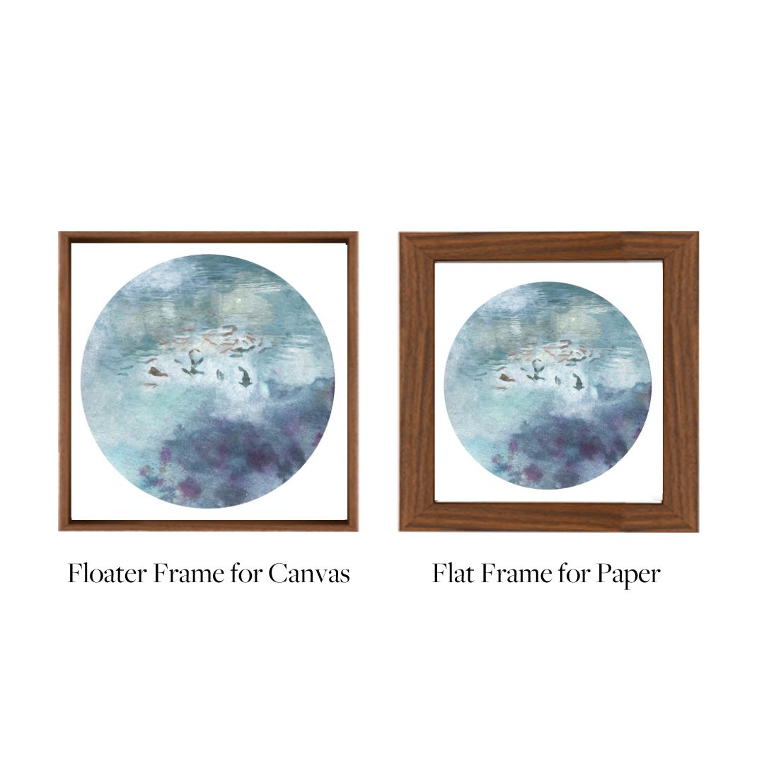 Choose a flat frame with professional quality acrylic glass and complimentary dry mounting for a paper print. Stretched canvas prints come with a protective varnish and are framed in a floater frame.