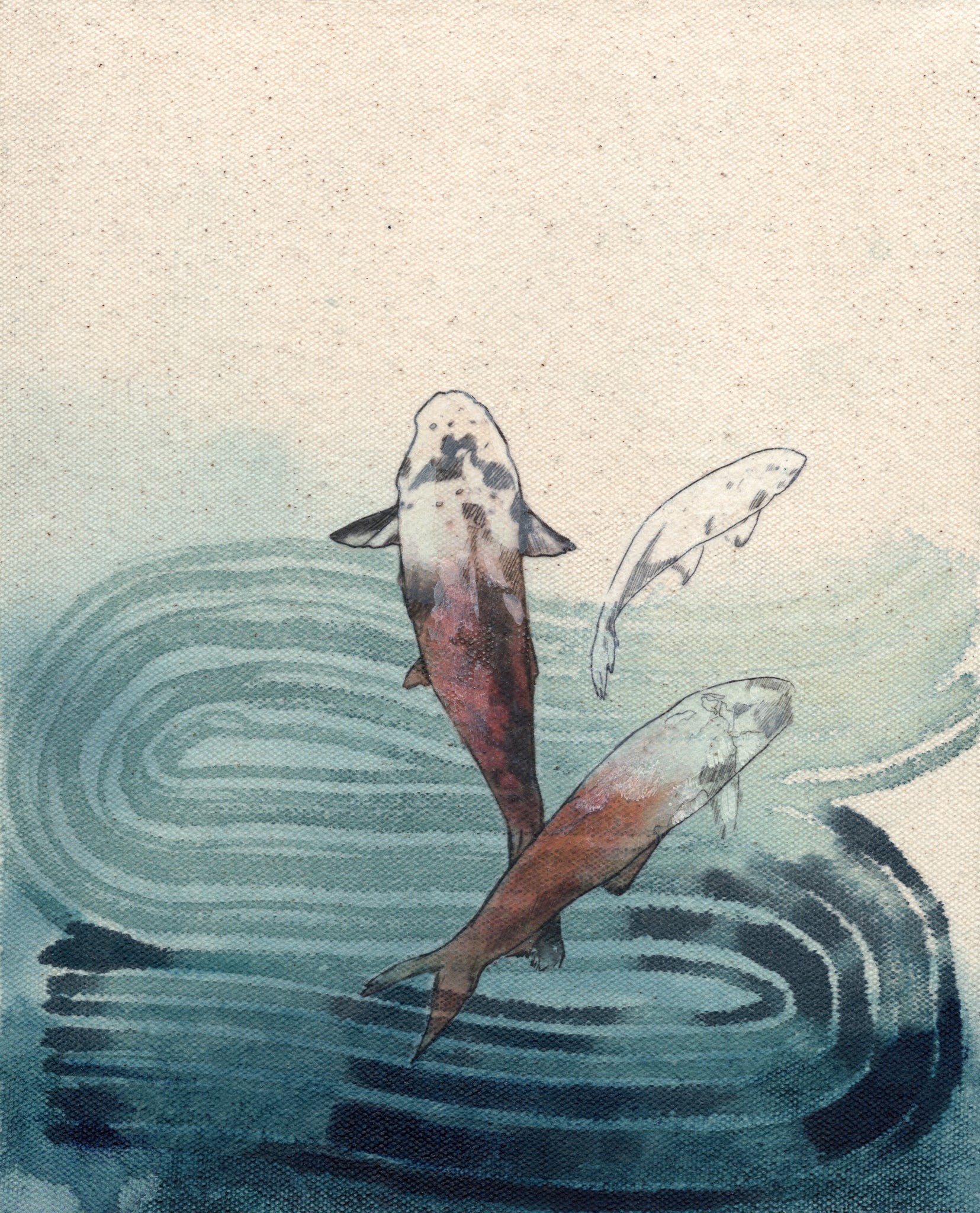 The painting In the Tide explores the profound connections between our surroundings and inner landscapes through the act of walking near water. Stephanie often goes for daily walks near water as a part of her creative practice and as a way to ground herself. Through her art, she hopes to share that same sense of relief and calm with the viewer.