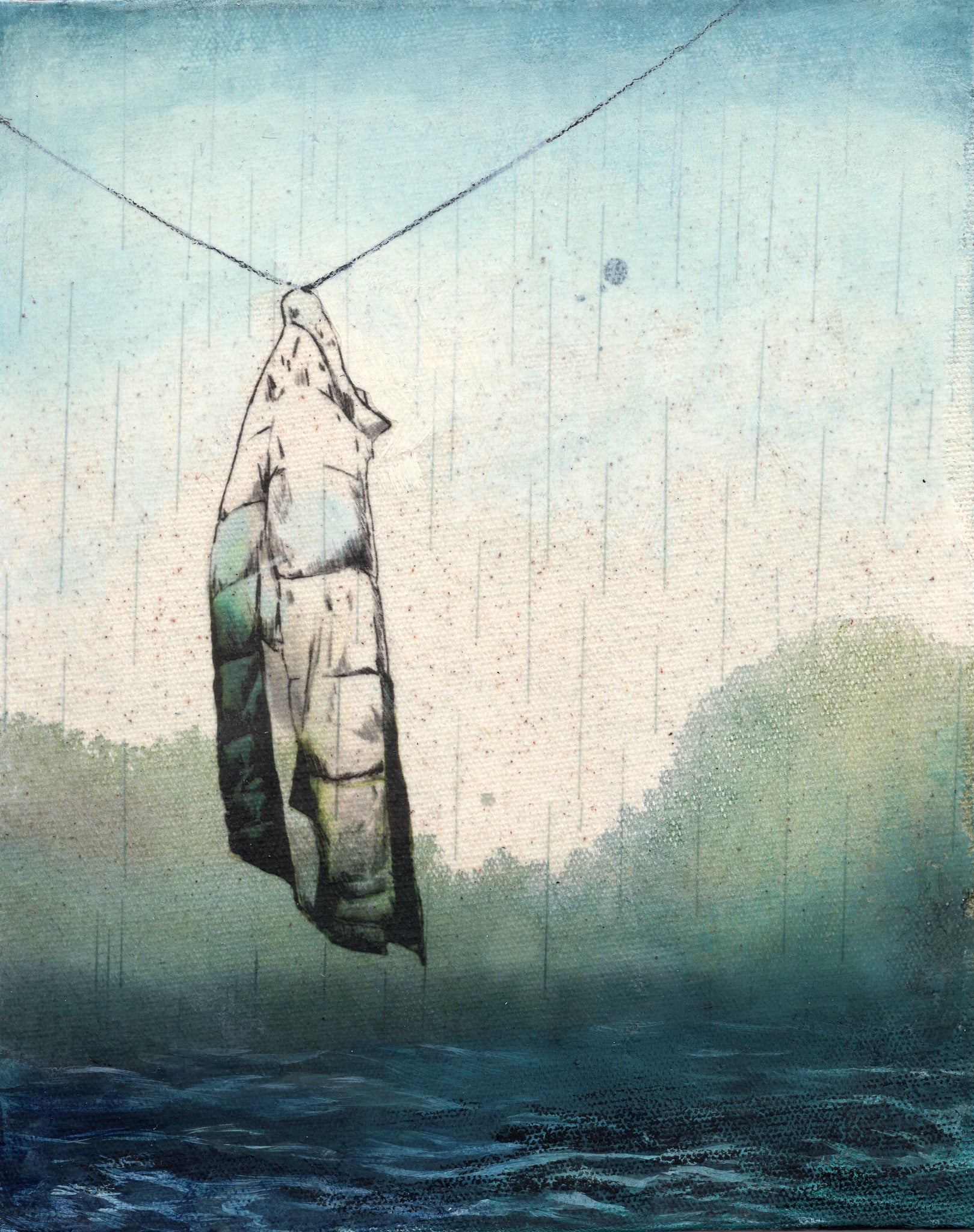The painting Lowering Sky explores the profound connections between our surroundings and inner landscapes through the act of walking near water. Stephanie often goes for daily walks near water as a part of her creative practice and as a way to ground herself. Through her art, she hopes to share that same sense of relief and calm with the viewer.
