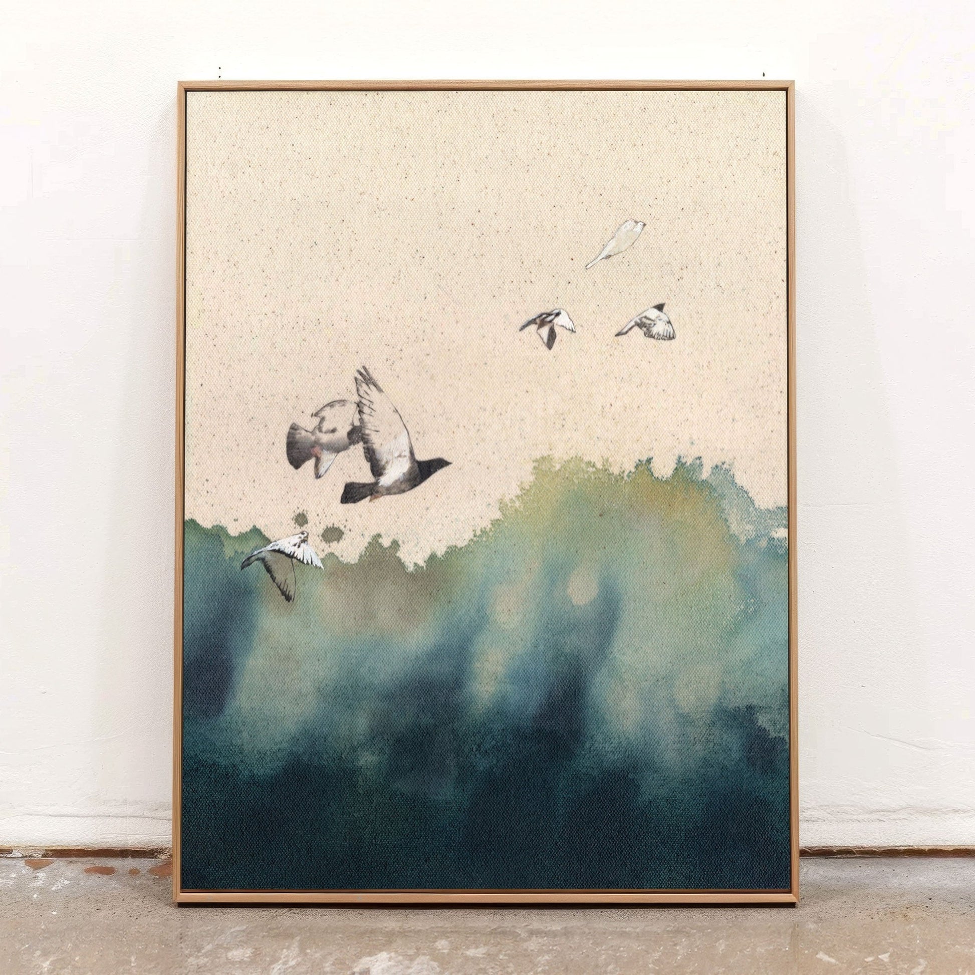 Stephanie's process is similar to the bodies of water she loves to paint - fluid and ever changing. She loves mixing different processes, such as printmaking, collage, painting, and digital photography. She often blends recognizable elements from her surroundings or memories with abstract shapes, whether by painting over collages or transferring them onto various surfaces.