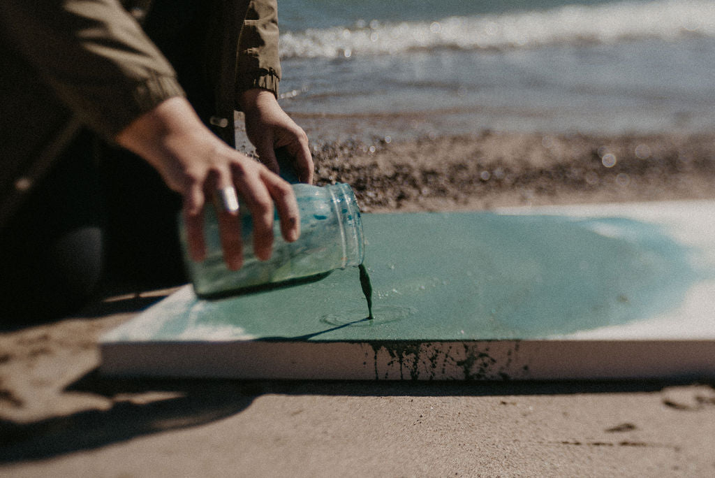 Stephanie's process is similar to the bodies of water she loves to paint - fluid and ever changing. She loves mixing different processes, such as printmaking, collage, painting, and digital photography. She often blends recognizable elements from her surroundings or memories with abstraction, whether by painting over collages or transferring them onto various surfaces.